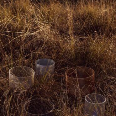 Terapia de sonido con cuencos de cristal de cuarzo con diferentes alquimias.